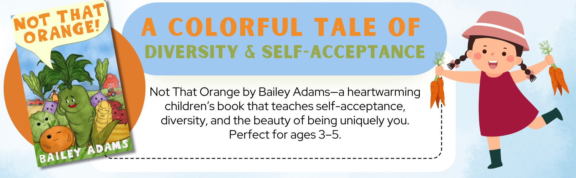 Through playful storytelling and charming illustrations, Not That Orange delivers a powerful message to young readers (ages 3–5):